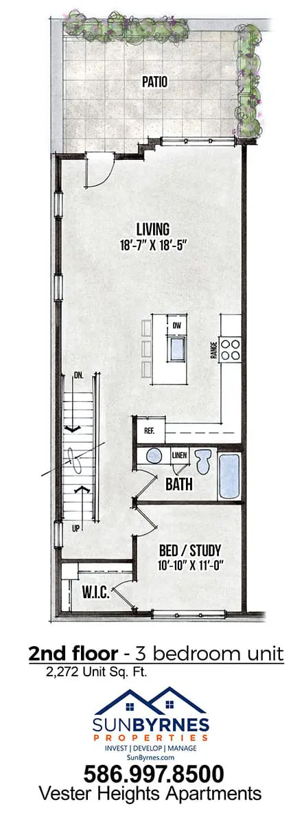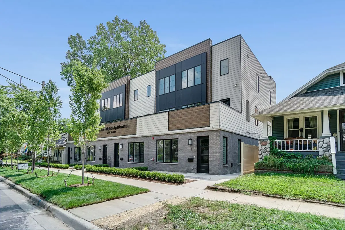 SunByrnes Properties & Construction developed and built an apartment complex at 244 Vester Street in Ferndale, MI. The building includes 8 units with 4 of them having 1 bedroom and 1 bathroom (753 sq. ft. each) and the other four have 3 bedrooms and 3 bathrooms in each (2,272 sq. ft. each). The building in total is 12,100 sq. ft. and it was completed in July of 2021. To view more details and see available units, click here.