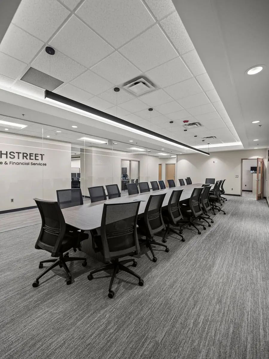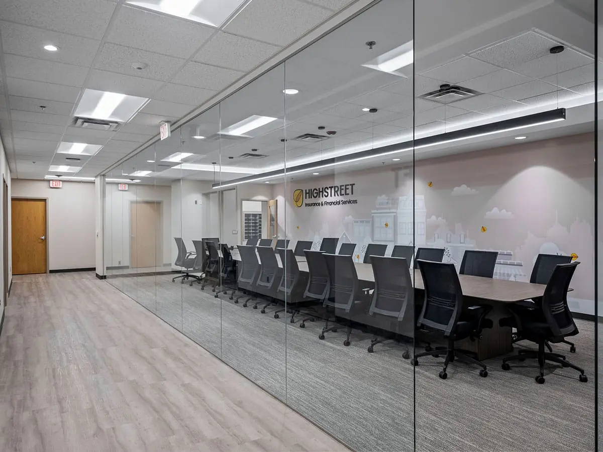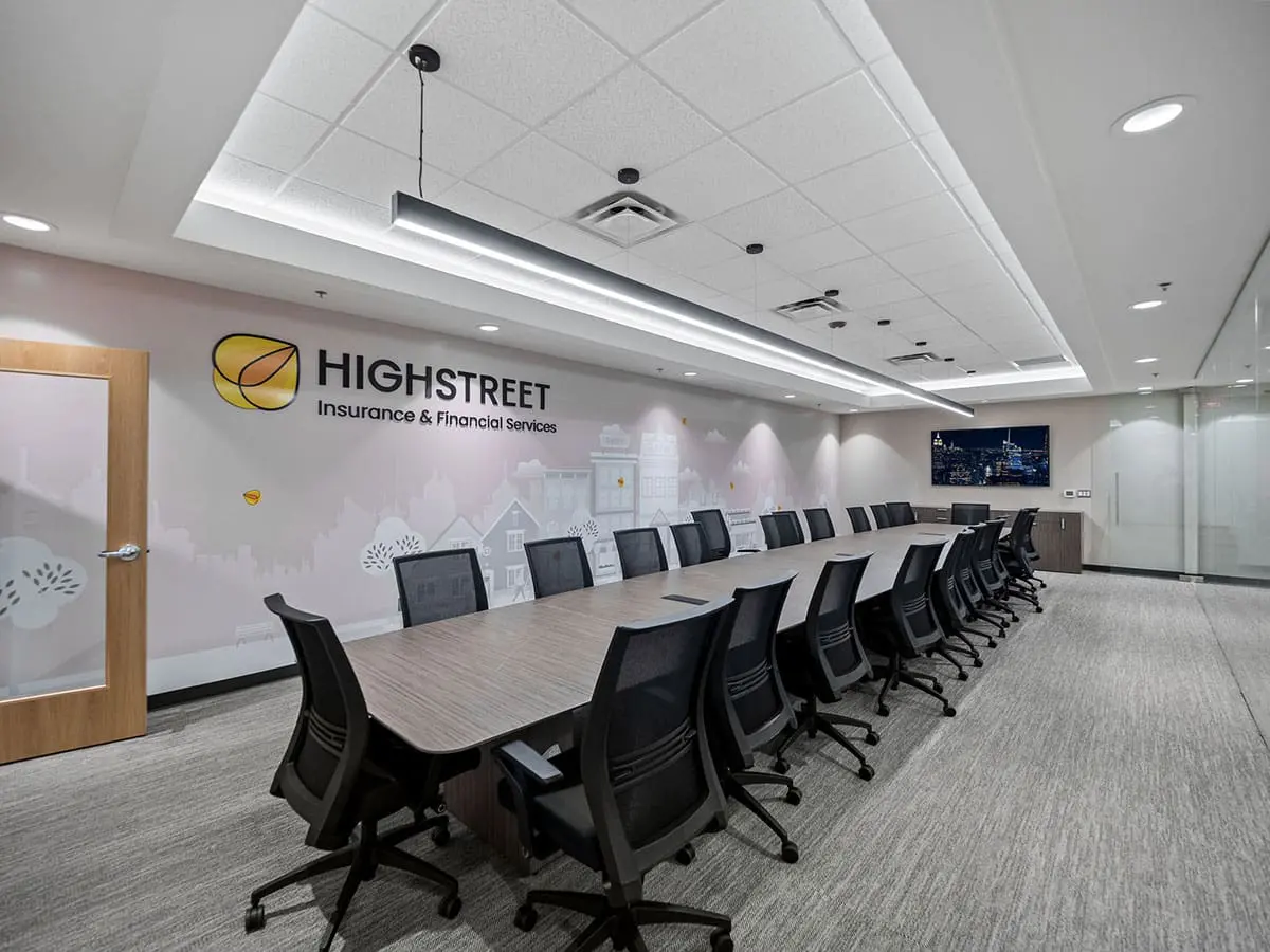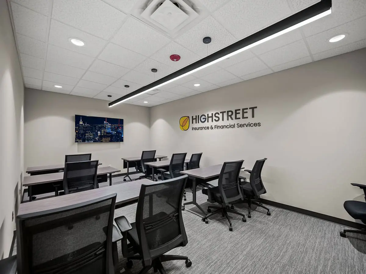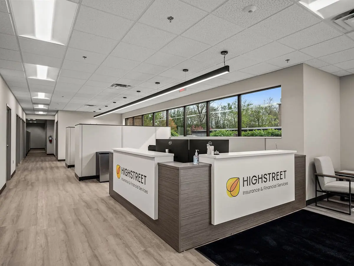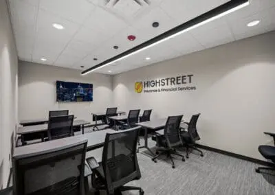 SunByrnes Construction proudly completed the office build-out and renovation for Highstreet Insurance, delivering a seamless expansion and modernization of their workspace. The project added 4,000 sq. ft. of newly acquired space to their existing 8,000 sq. ft. office, creating a combined 12,000 sq. ft. environment tailored to support their growing operations.