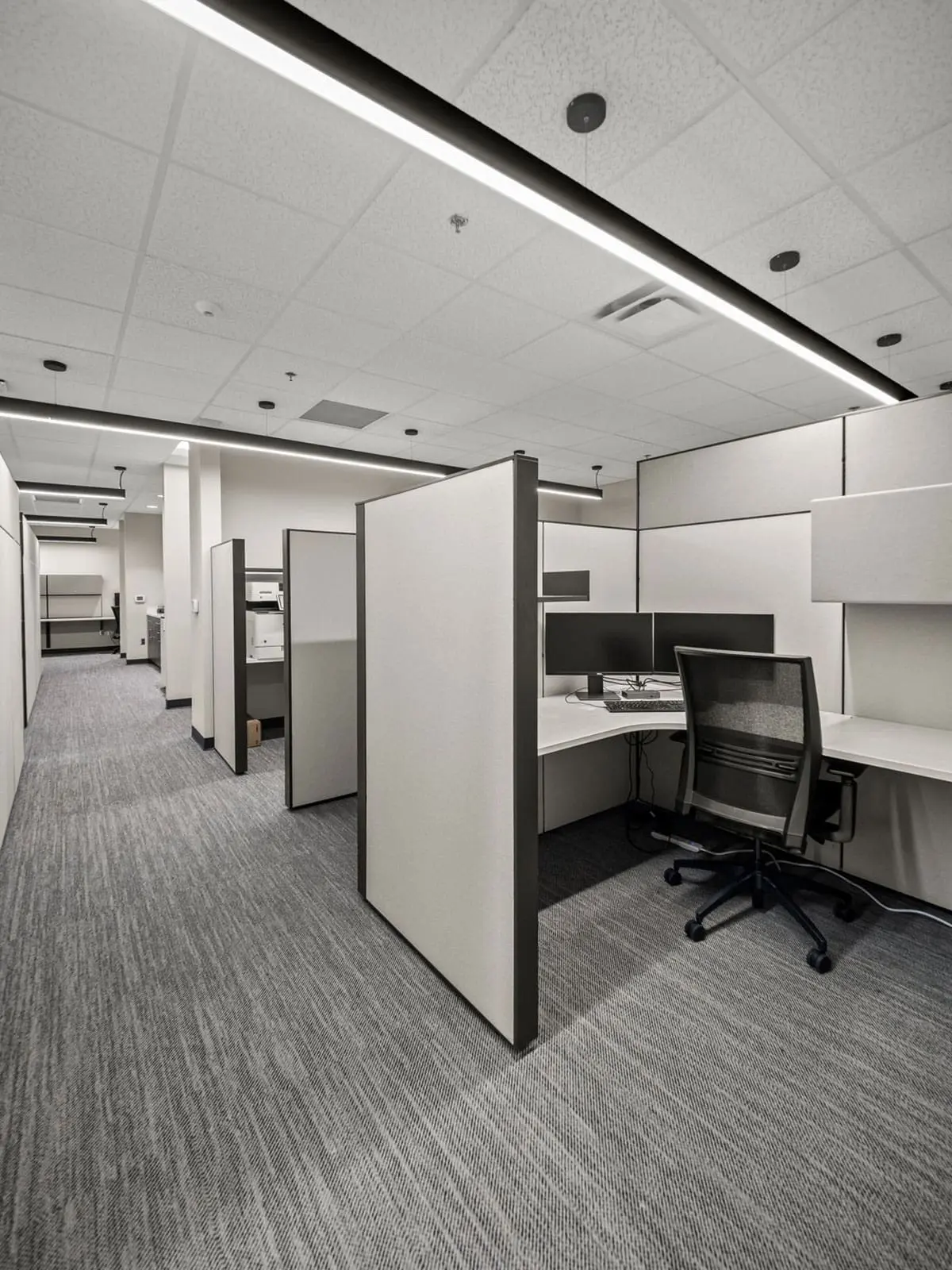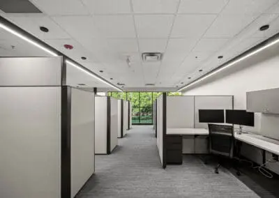 Our team fully demolished the newly acquired area and built it out to match a sleek, modern design, while simultaneously renovating the original office space to align with the fresh look and feel of the expansion. The work included constructing private offices, open workstations, collaborative spaces, an upgraded reception area, modern breakrooms, and conference rooms, as well as installing new flooring, custom millwork, updated lighting, electrical systems, and high-end finishes.