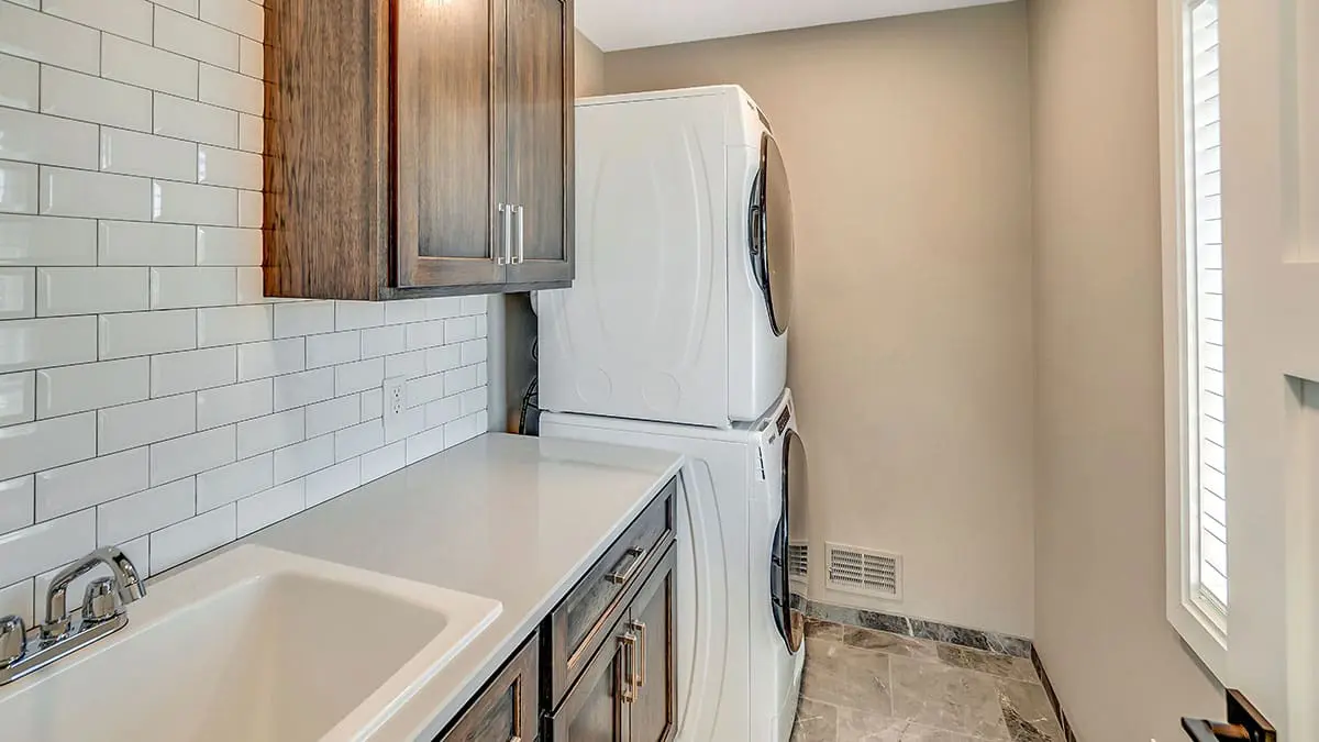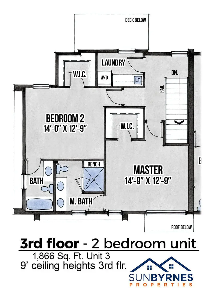 Spacious layouts include two large bedrooms—each with its own private full bath—plus a generous open-concept living and kitchen area centered around an impressive 11-foot island, perfect for entertaining. Additional highlights include a dedicated laundry room with utility sink and an oversized two-car garage with ample storage space.